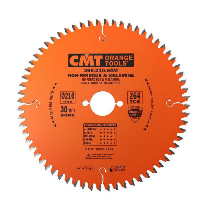 Piła do cięcia metali nieżelaznych i płyt laminowanych o średnicy 210 mm, otwór 30 mm, 64 zęby CMT ORANGE TOOLS