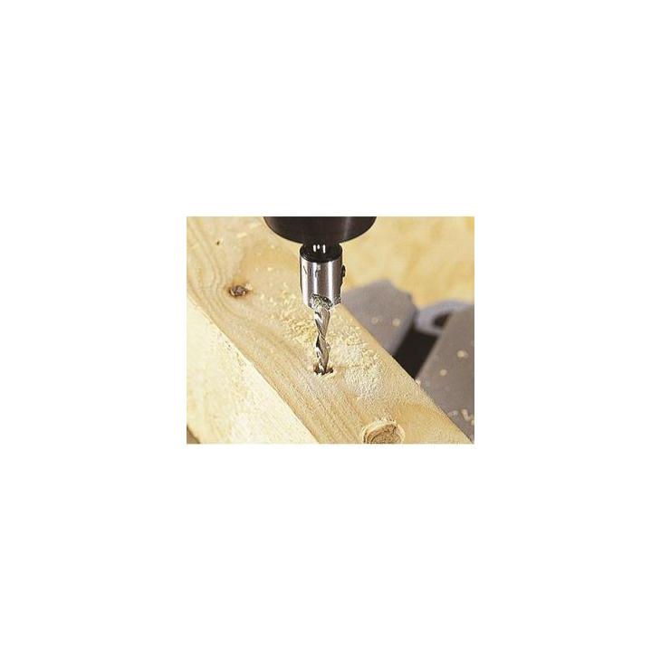 - Pogłebiacz jest mocowany na wiertle za pomocą śrubki dociskowej, dzięki czemu można ustawić go na najbardziej optymalnej wysokości wiertła