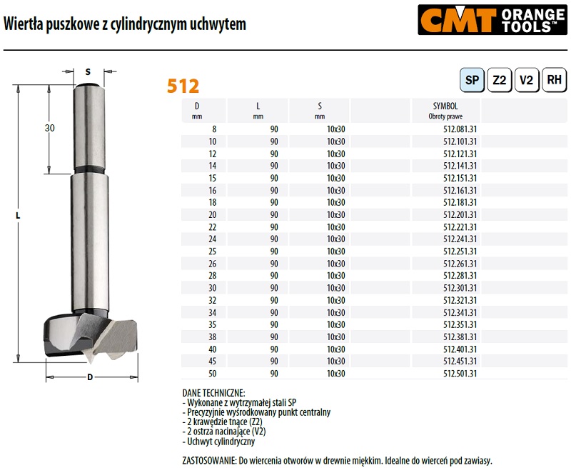 Do wiercenia otworów w drewnie miękkim. Idealne do wiercenia pod zawiasy.