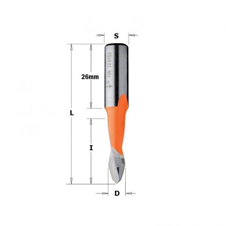 Wiertło Xtreme krótkie przelotowe o średnicy 5mm długość L-57,5mm, długość robocza I-27mm, lewe obroty, firmy CMT ORANGE TOOLS.