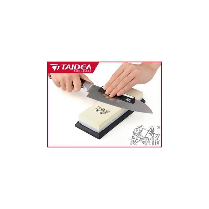 Namocz kamień w wodzie lub użyj oleju do ostrzałek firmy Taidea. Postaw ostrzałkę na płaskiej powierzchni.