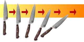 By naostrzyć nóż, przesuń po kamieniu (lekko dociskając) kilkukrotnie najpierw jedną, potem drugą stronę noża. Ostrząc nóż staraj się zachować odpowiedni kąt pochylenia noża (15°-30°)