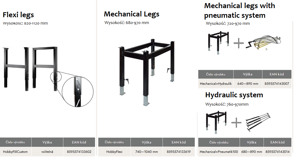 UWAGA! Stoły można zamówić w wersjach z różnymi nóżkami: stałe drewniane (standardowe), regulowana śrubami wysokość (FLEXI), regulowana pokrętłem wysokość (MECHANICAL), hydraulicznie regulowana wysokość, pneumatycznie regulowana wysokość. Każda opcja jest w innej cenie. Ceny pokazane są w wariantach produktu na górze kartoteki.