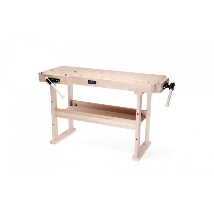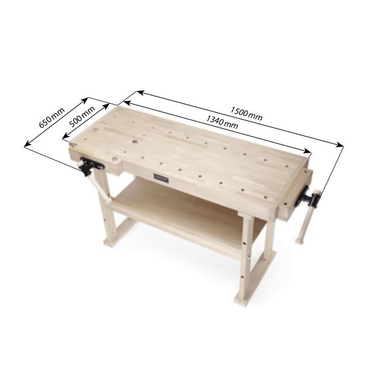 Model ADVANCE produkowany jest w trzech rozmiarach 1500 mm, 1700 mm i 2000 mm z najwyższej jakości drewna bukowego. Ten model może być używany zarówno przez profesjonalistów jak i majsterkowiczów, stolarzy oraz rzeźbiarzy. Otwarta półka jest idealnym miejscem na przechowywanie wszystkich materiałów oraz urządzeń. 31 otworów na imaki w blacie pozwala na mocowanie różnych materiałów w różnych rozmiarach, a otwory na nogach stołu pomagają w pionowy montażu obrabianego elementu.