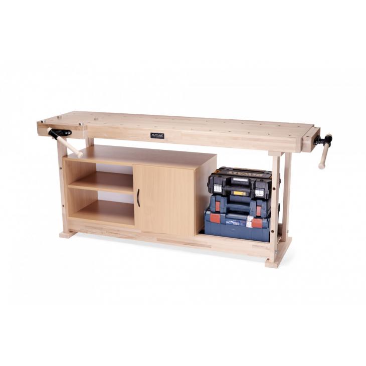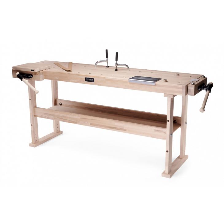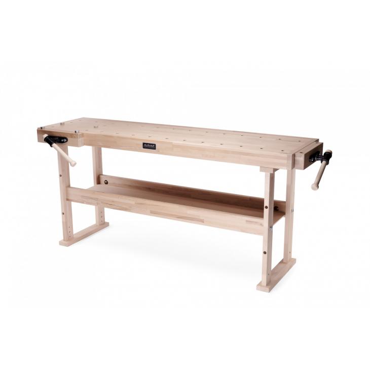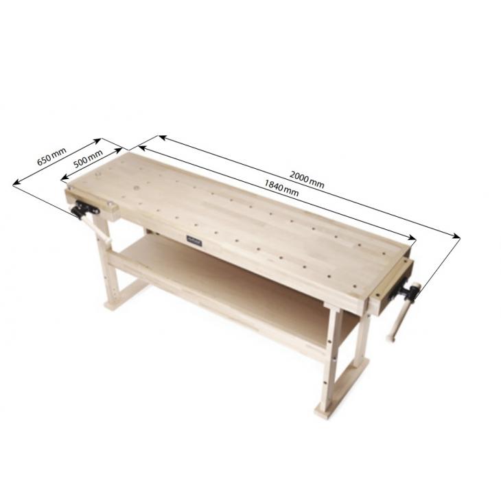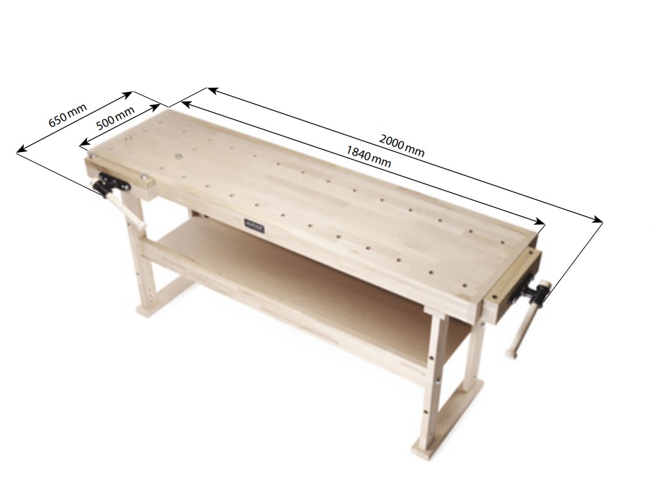Model ADVANCE produkowany jest w trzech rozmiarach 1500 mm, 1700 mm i 2000 mm z najwyższej jakości drewna bukowego. Ten model może być używany zarówno przez profesjonalistów jak i majsterkowiczów, stolarzy oraz rzeźbiarzy. Otwarta półka jest idealnym miejscem na przechowywanie wszystkich materiałów oraz urządzeń. 31 otworów na imaki w blacie pozwala na mocowanie różnych materiałów w różnych rozmiarach, a otwory na nogach stołu pomagają w pionowy montażu obrabianego elementu.