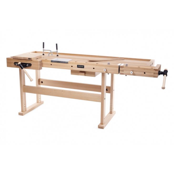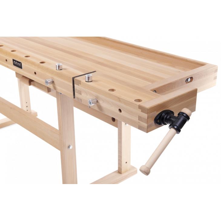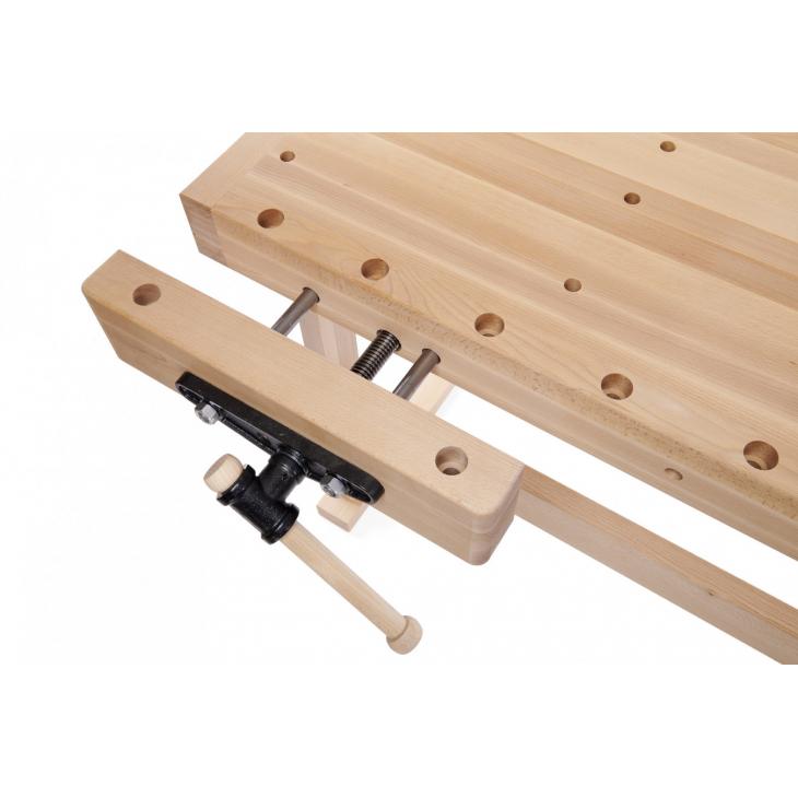 Model PREMIUM PLUS jest przeznaczony dla wymagających użytkowników. Połączona na wczepy konstrukcja gwarantuje wysoką odporność i żywotność stołu. Jest to jedna z najwytrzymalszych konstrukcji o szerokim zastosowaniu. Jest wyposażony w dwa imadła ze śrubą centralną i dwoma prowadnicami dla precyzyjnego i pewnego prowadzenia - przednie imadło ma solidną konstrukcję, 520 mm długości i szerokości 70 mm. Imadło tylne ma długość 450 mm
