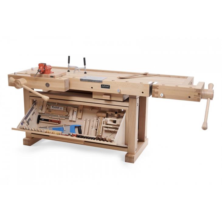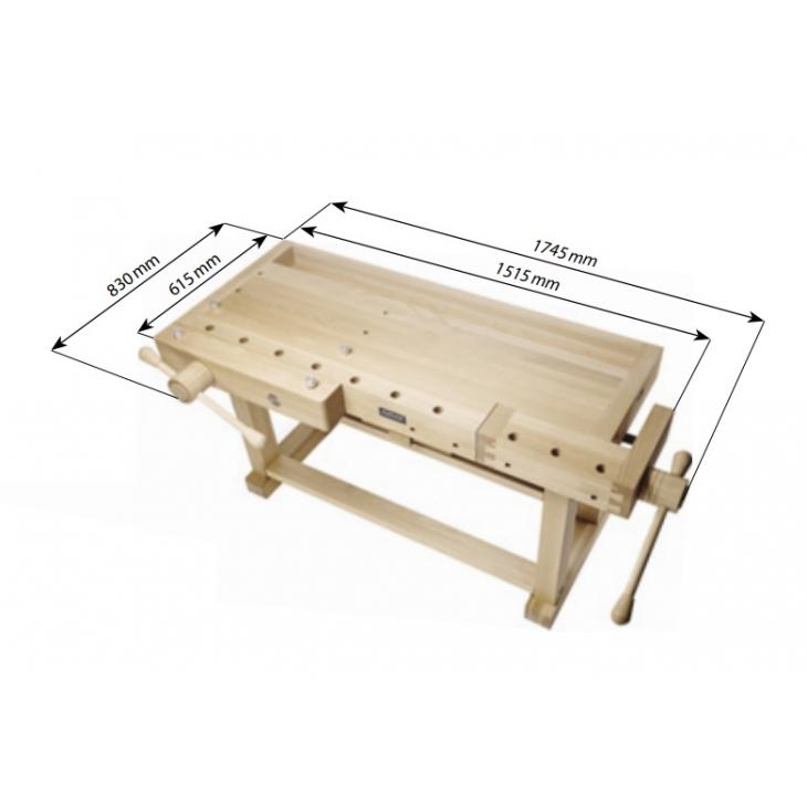 Model SUPERB przeznaczony dla profesjonalistów. Zaspokaja potrzeby najbardziej wymagających rzemieślników pod względem wysokiej jakości, porządnego wykonania, stabilności podczas pracy i poręczności. Stół został wykonany z litego drewna bukowego z blatem o grubości 80 mm połączonym na " jaskółczy ogon". Przedni docisk ma 780 mm długości oraz 100 mm grubości. Staranne i równoległe dociskanie obrabianego elementu zapewniają podwójne pręty prowadzące z wysokiej jakości gwintem trapezowym. Boczny docisk jest wyposażony w podwójny pręt prowadzący dla zachowania maksimum siły i trzy otwory na imaki. Reszta piętnastu otworów do mocowania imaków jest rozmieszczone w bacie stołu tak aby optymalnie wykorzystać możliwość obydwu docisków. Zwartą i stabilną konstrukcję stołu zapewniają masywne i silne nogi z dwiema rozporami. Koryto do odkładania lub przechowywania narzędzi znajduje się w tylnej części blatu stołu.